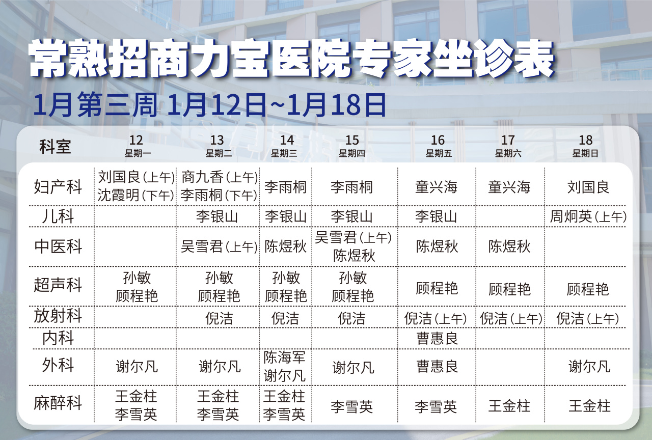 门诊专家排班如下