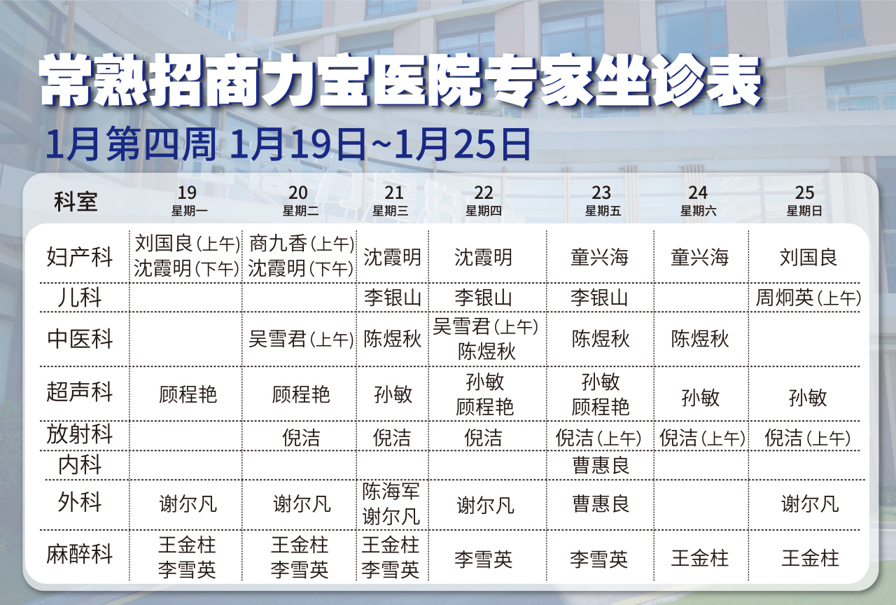 门诊专家排班如下