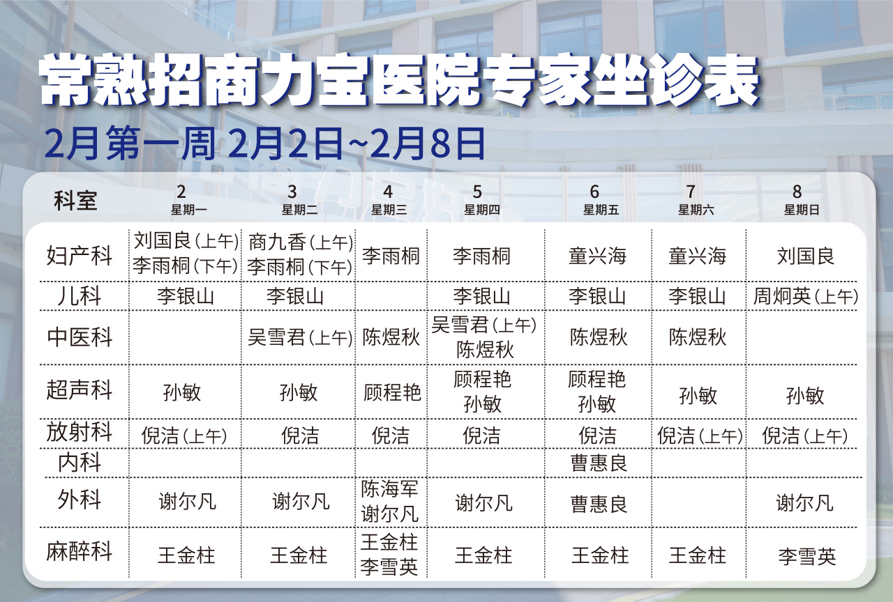 门诊专家排班如下