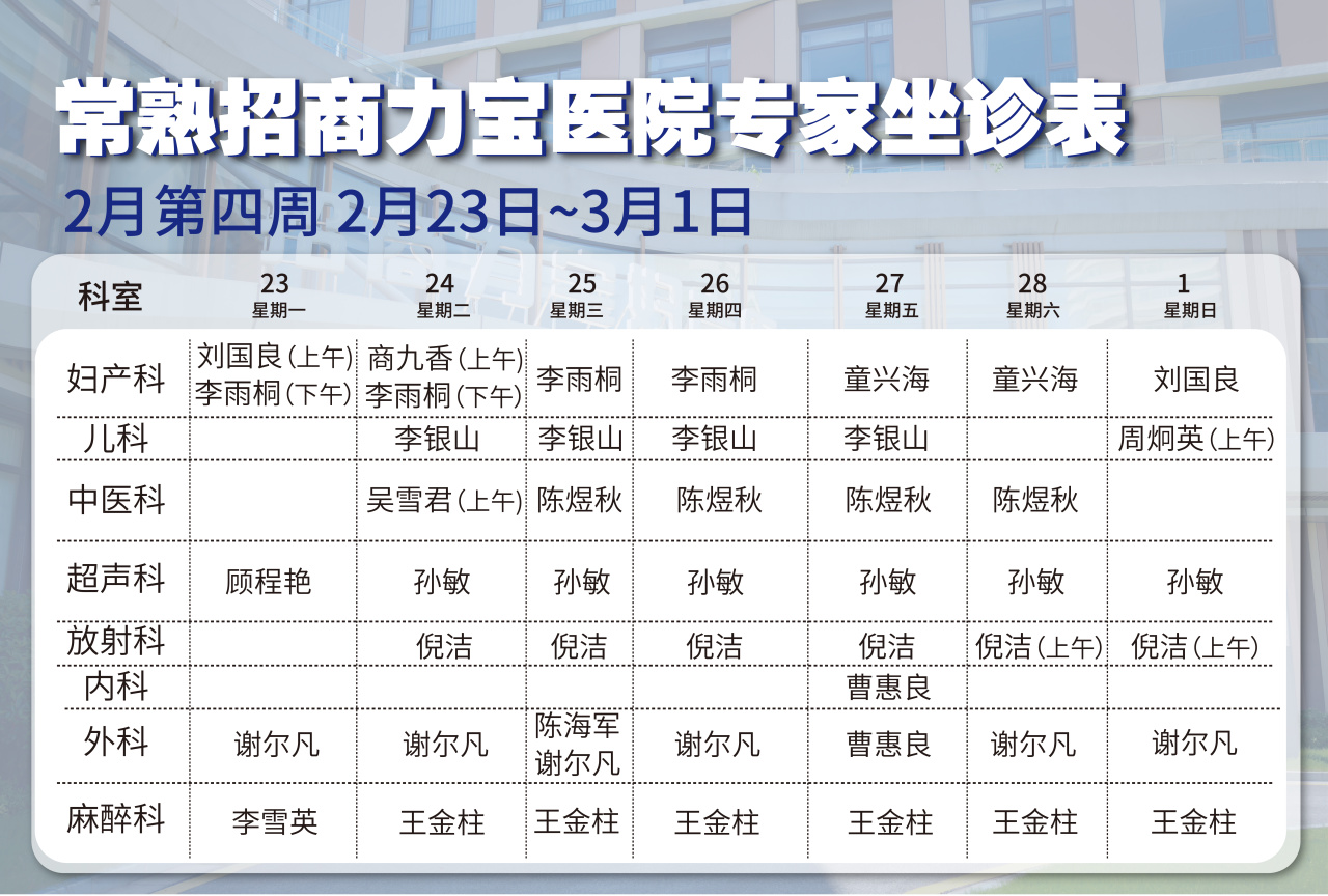 门诊专家排班如下